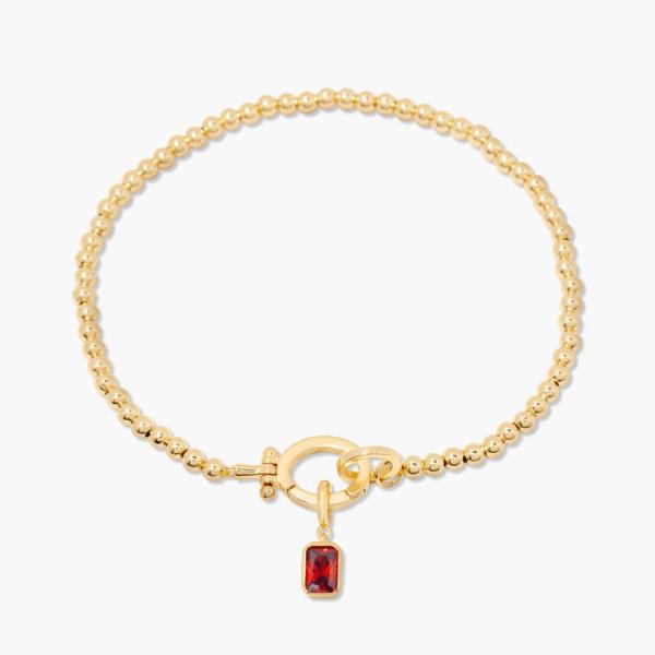 Treat your wrists to some bling with the Mackenzie Birthstone Bracelet. With a vivid birthstone charm, and intricately-beaded gold, this sparkling accessory is sure to add a touch of glam to any outfit.